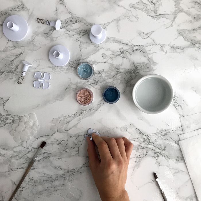 Цветочная пыльца в отличие от обычных сухих красителей имеет максимально мелкий помол. С ней невероятно удобно работать. Особенно при изготовлении цветов. Именно с её помощью можно добиться плавного перехода цвета. Помимо базовых оттенков вы можете смешивать красители между собой. Или же добавить в пыльцу диоксид титана и получить цвет на тон светлее.
