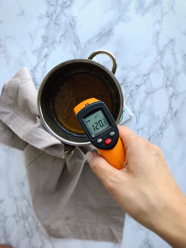 Техническое замечание: яичный белок лучше всего начать взбивать после того, как мёд достиг отметки в 80 градусов. Именно в этом случае каждый из ингредиентов будет готов в нужное время. И на выходе вы получите ту самую медовую меренгу.