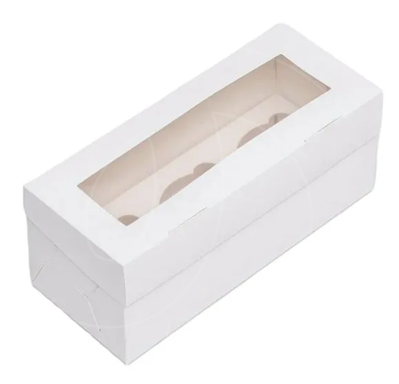 Доставка Коробка на 3 капкейка с окном белая 25х10х10 см из магазина в вашем городе:
