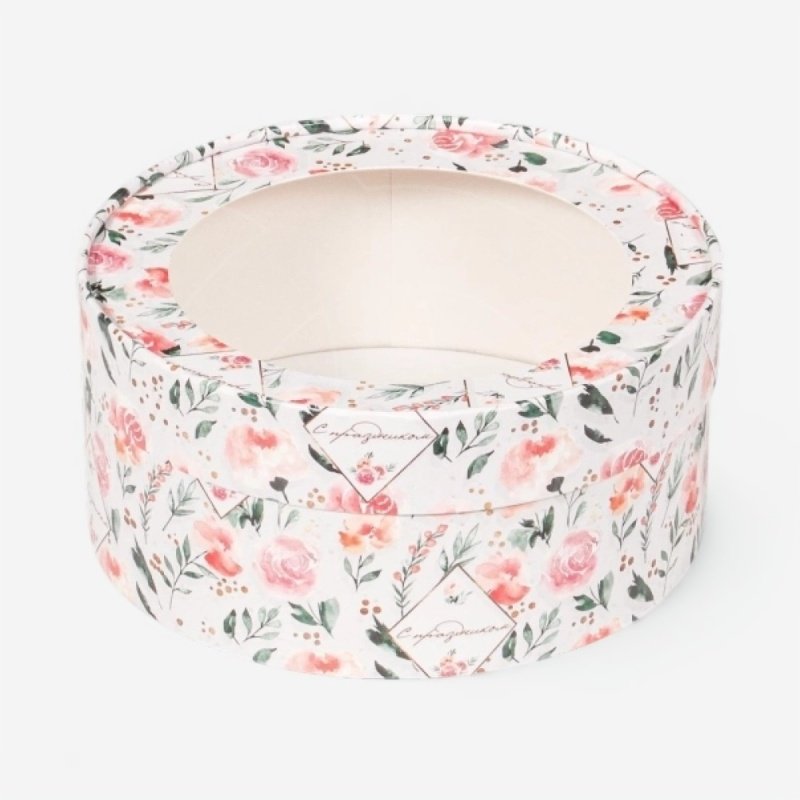 Доставка Коробка для сладостей с окном круглая "Розы" 16х7 см из магазина в вашем городе: