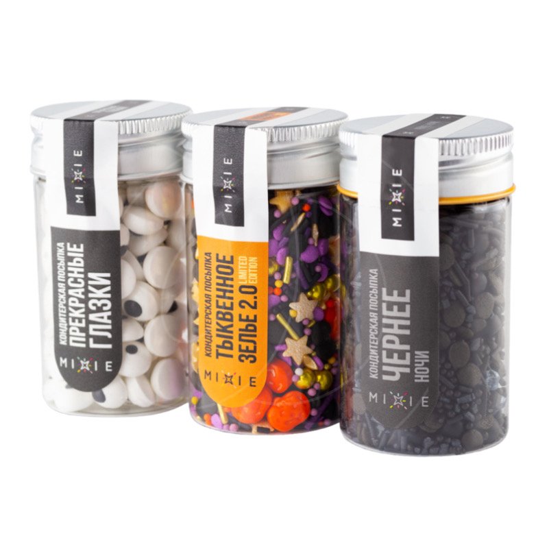 Прекрасные глазки, Тыквенное зелье, Чернее ночи - каждая из этих таинственных посыпок привнесет в ваш праздник что-то особенное, а если смешать их, как зелье в заколдованном котле, вы получите самые удивительные сочетания!