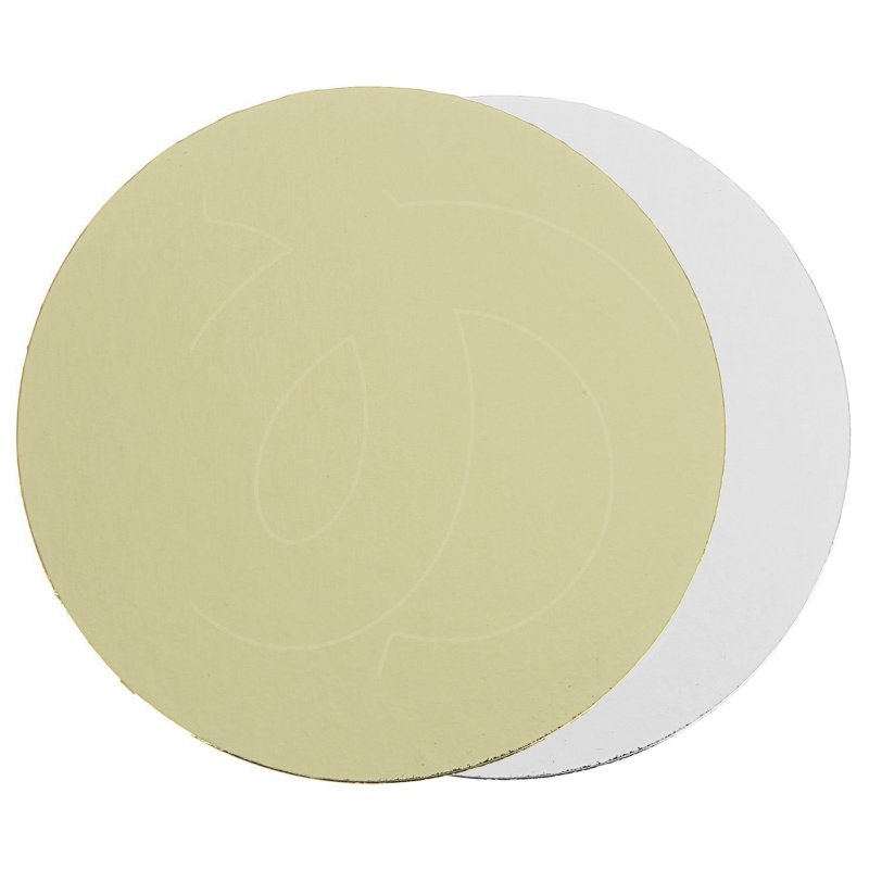 Толстая картонная подложка светлого золотого цвета с одной стороны и белого с другой. Используется как многоразовый поднос для тортов и пирожных.