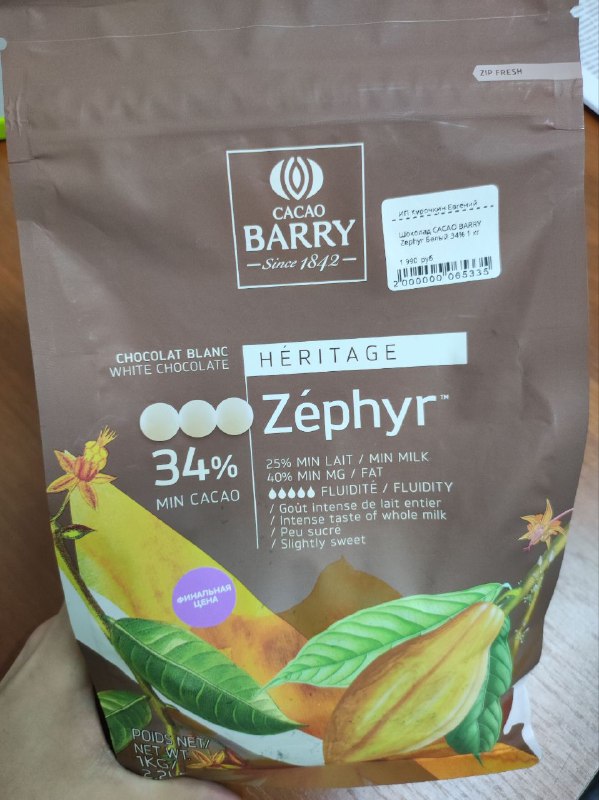 Доставка Шоколад белый CACAO BARRY "Zephyr" 34% 1 кг из магазина в вашем городе: