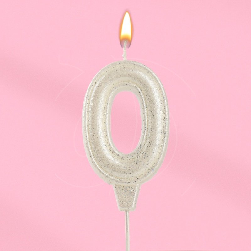 Доставка Свеча декоративная Цифра "0" Жемчужный перламутр с блёстками из магазина в вашем городе: