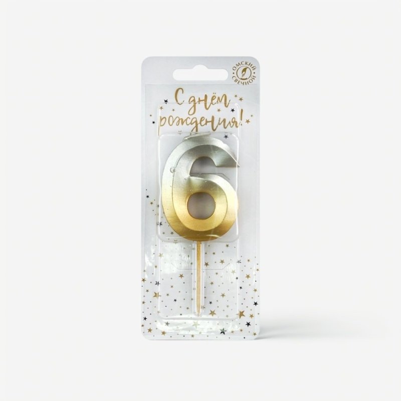 Доставка Свеча декоративная Цифра "6" Золото-Серебро из магазина в вашем городе: