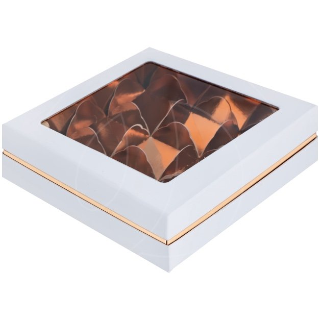 Доставка Коробка для 9 моти с окном и золотым ложементом белая 18х18х4,5 см из магазина в вашем городе: