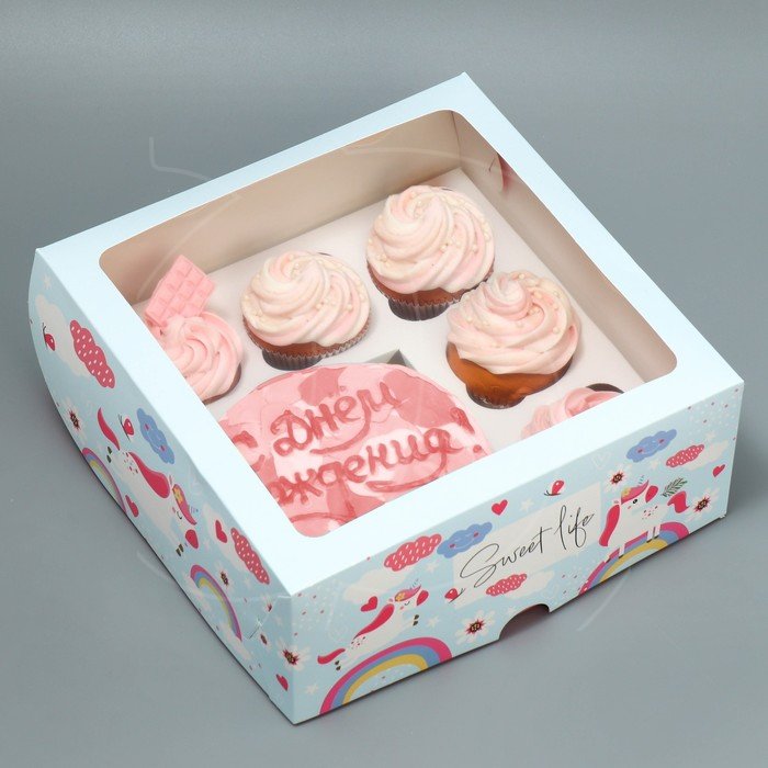 Доставка Коробка для бенто-торта и капкейков "Сладкая жизнь" 25х25х10 см из магазина в вашем городе: