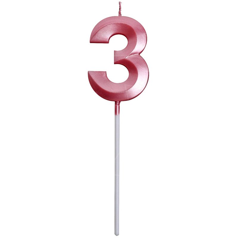 Доставка Свеча декоративная Цифра "3" Розовая перламутровая из магазина в вашем городе:
