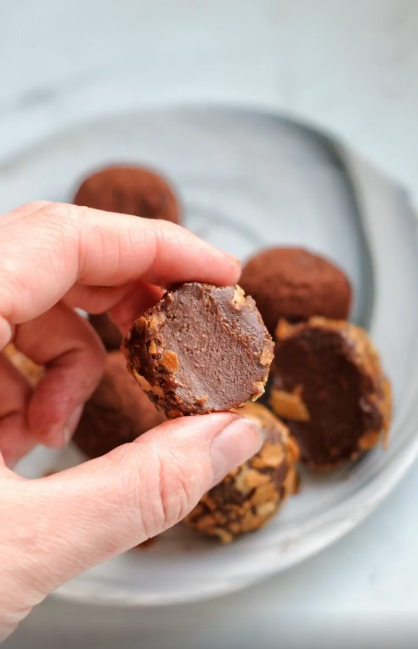 5. Готовый ганаш скатайте в шарики, в середину можно добавить обжаренный фундук.
