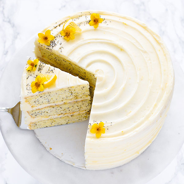 Украсить ломтиками лимона, посыпьте маком и съедобными цветами при желании.